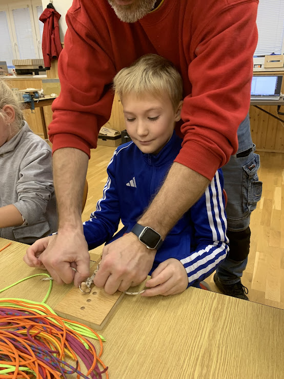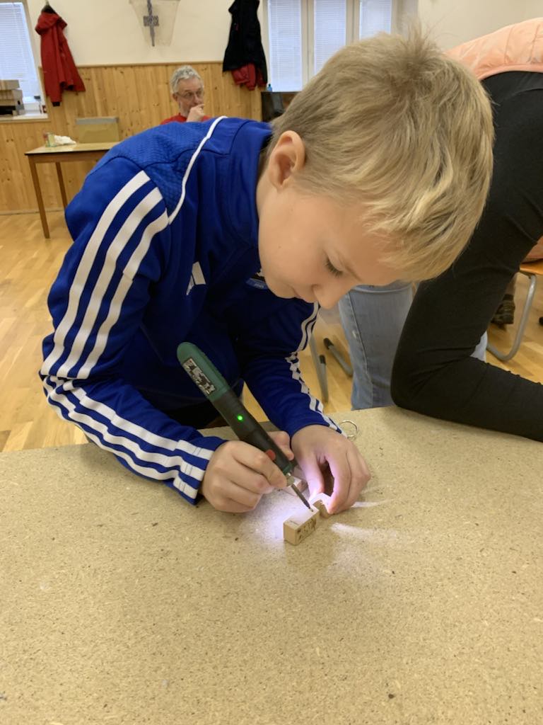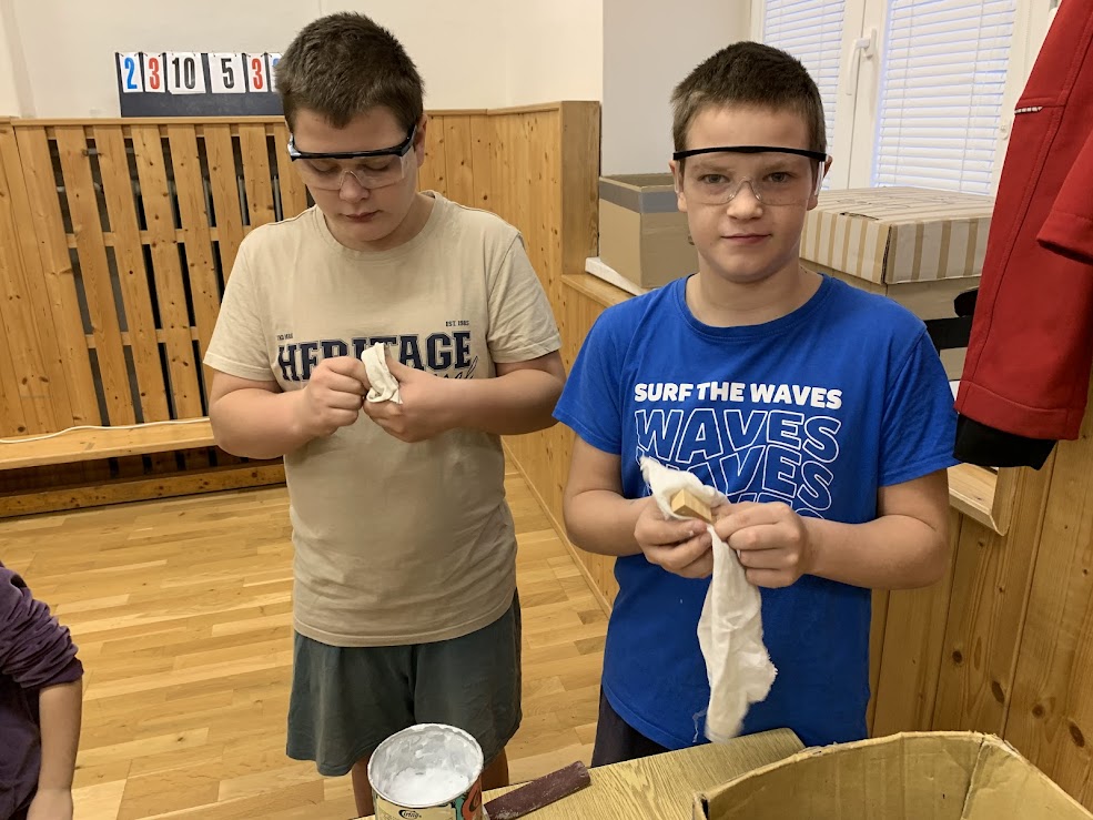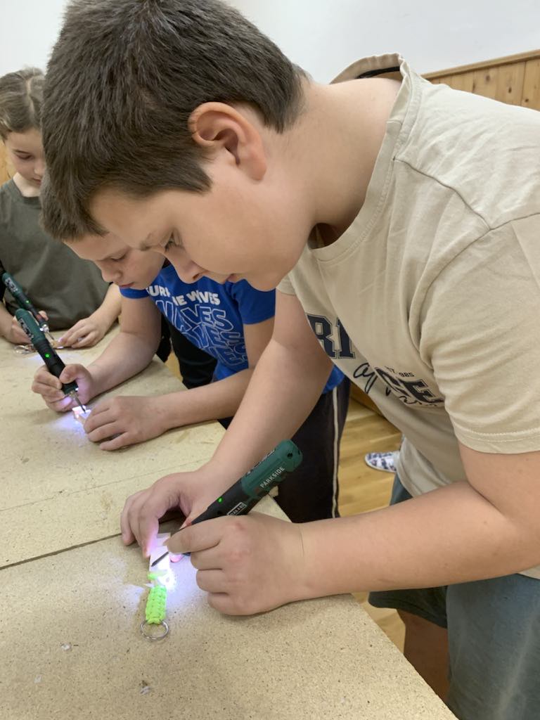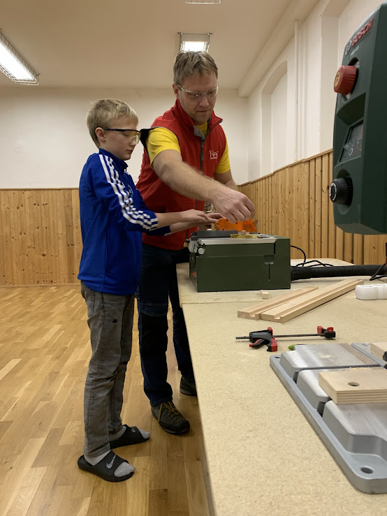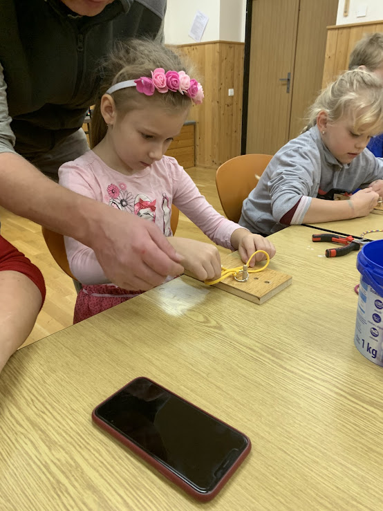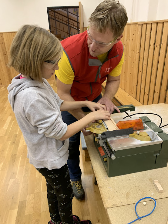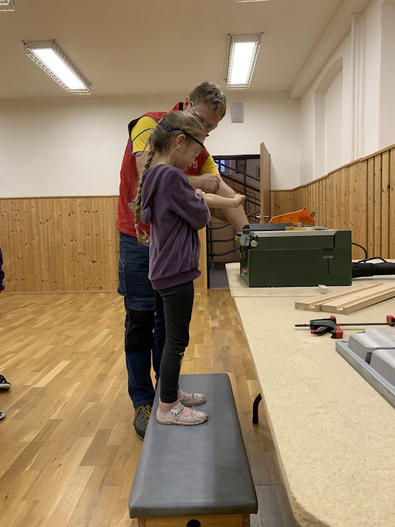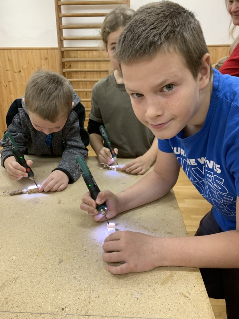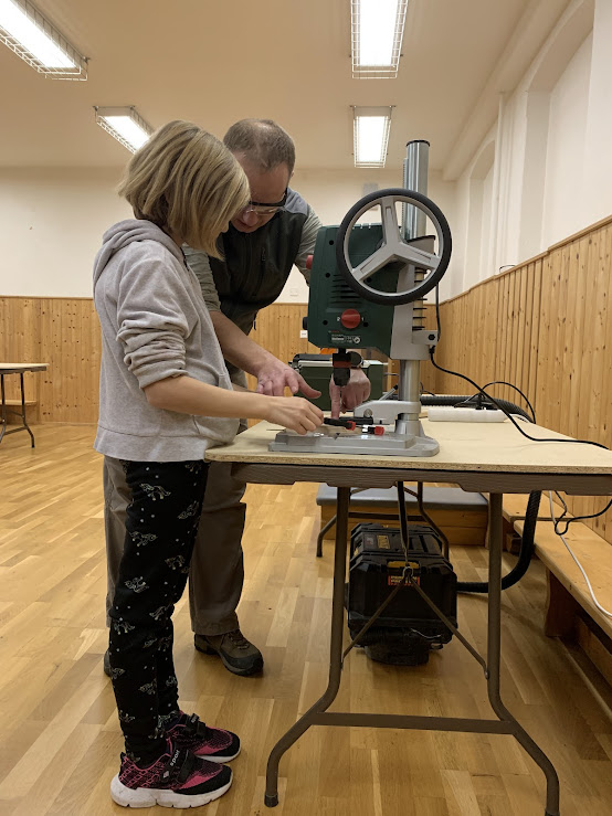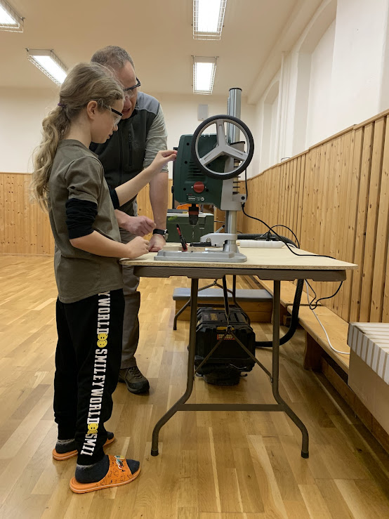 Žáci si pod odborným dohledem vyráběli stojan na mobil nebo tablet.
